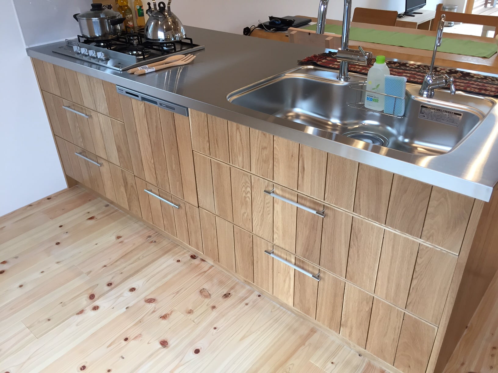 オーダーではなく、スイージーというシステムキッチンでして、このように対面側を収納にしたり、キッチンの背面収納を揃えることができます。