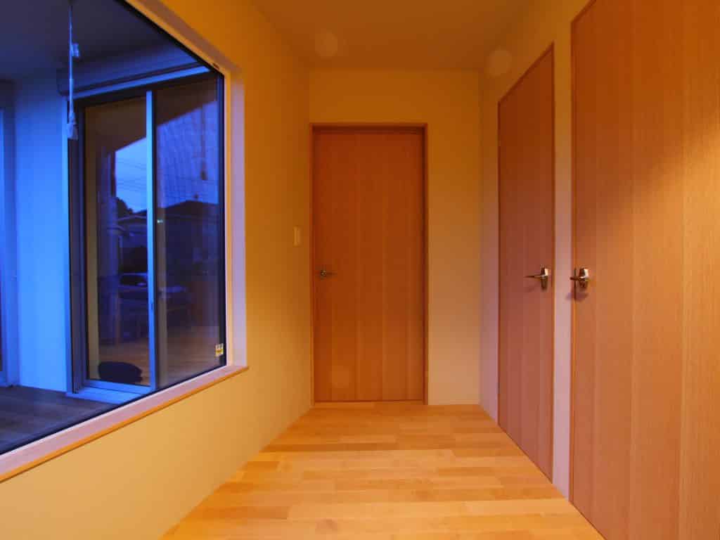 こちらのお家の天井の高さが2.2mと低く抑えています。なおかつベット下の空間を有効に使えるよう、可能な限り高めに設計してあります。