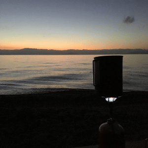 ツーリングat三崎港。猫と設計管理の岩本が戯れているシーン