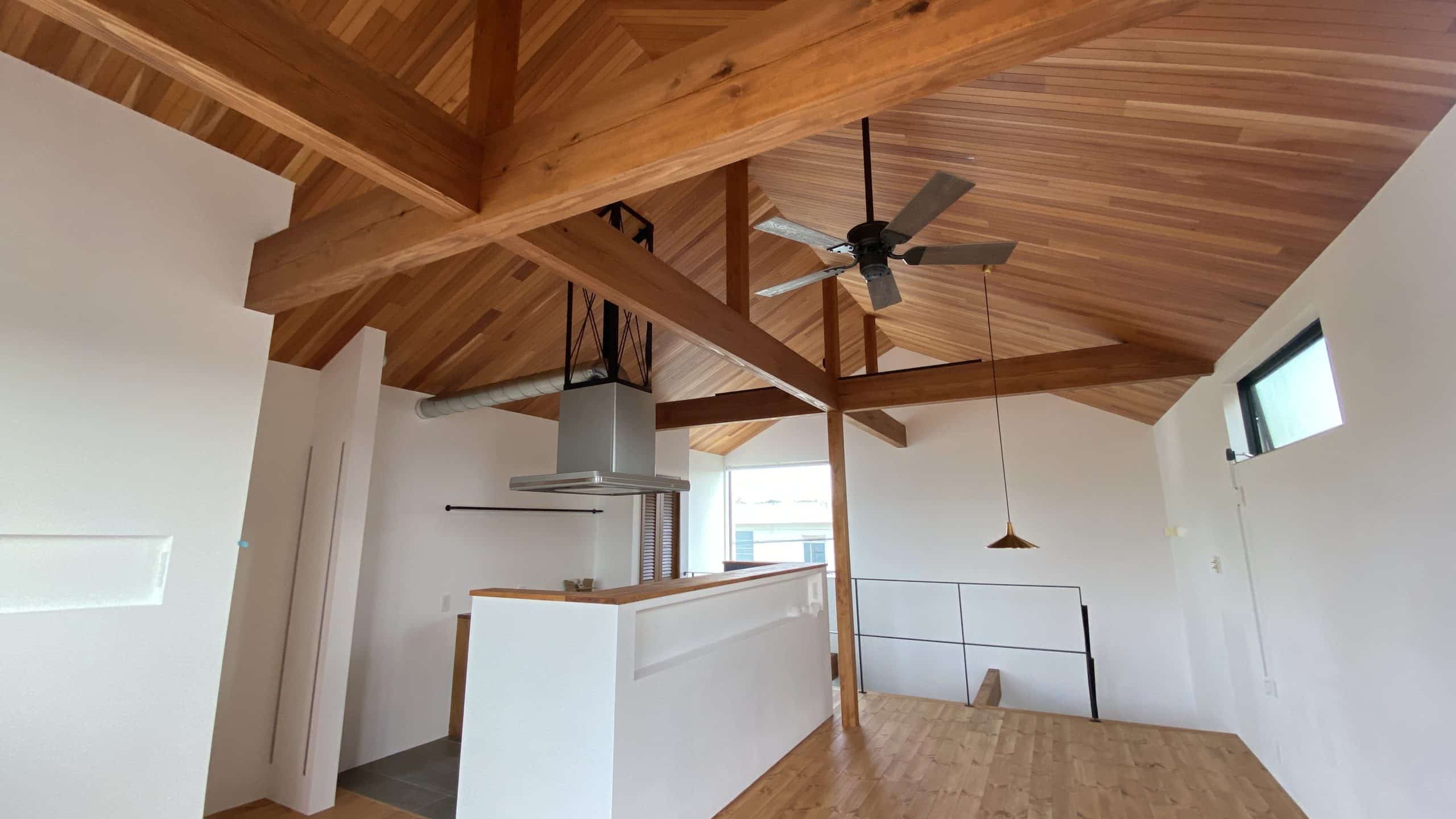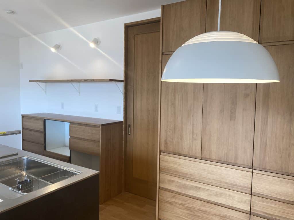 造作材をホワイトに塗装することで、色が統一。