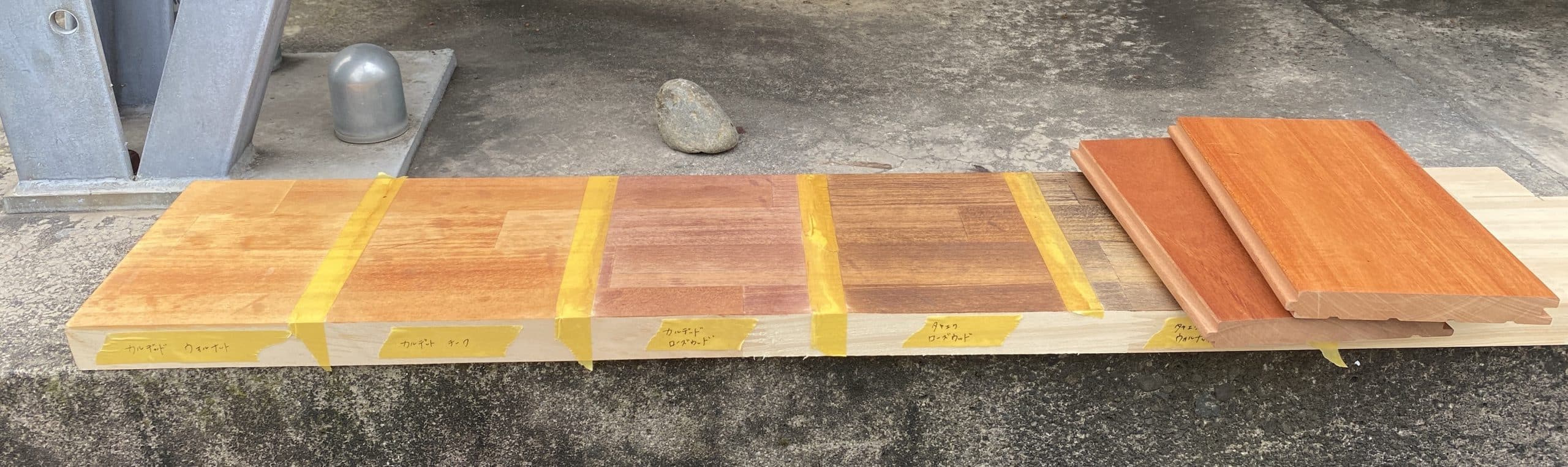 造作塗装はリボス カルデットチーク(左から2番目)をご提案させていただきました。