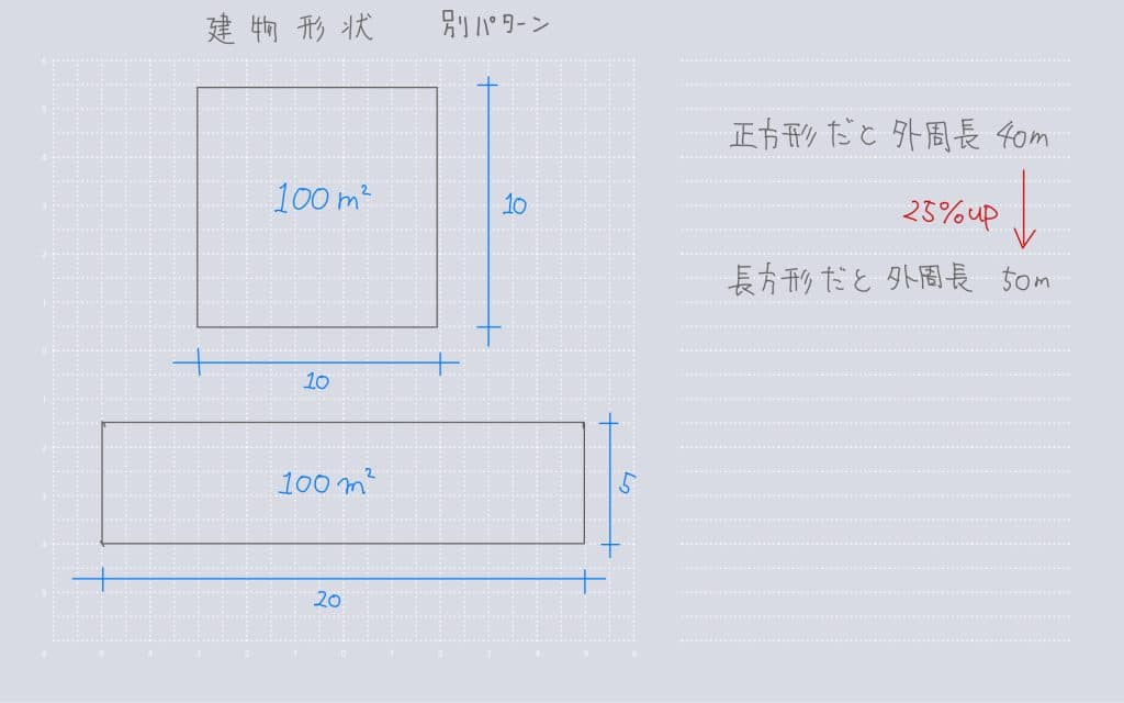 凸凹が少ない綺麗な形の建物の方が金額が抑えられるなんて