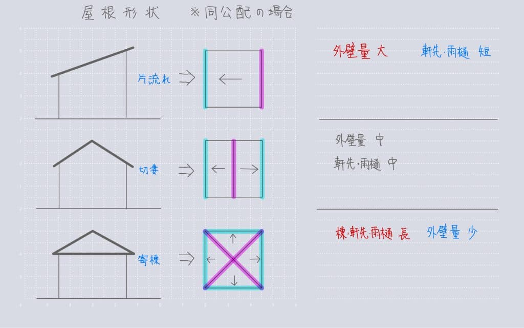 必要な勾配が少し大きめなので、外壁量が増える傾向にあります。