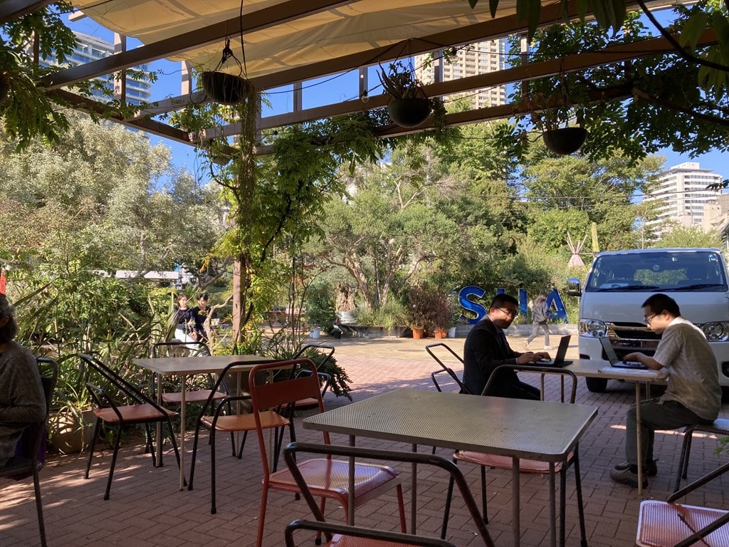 コーヒーを購入し外でのんびり。今の時期はもう寒いですが、行った時期は丁度よく気持ちがよかったです。