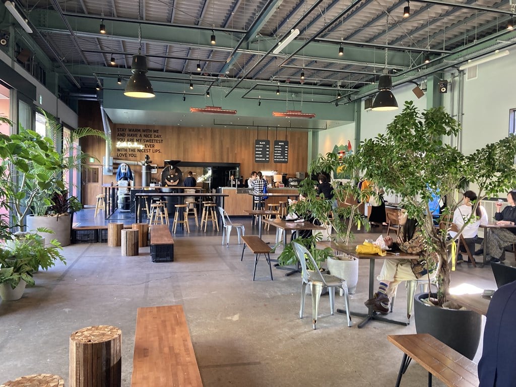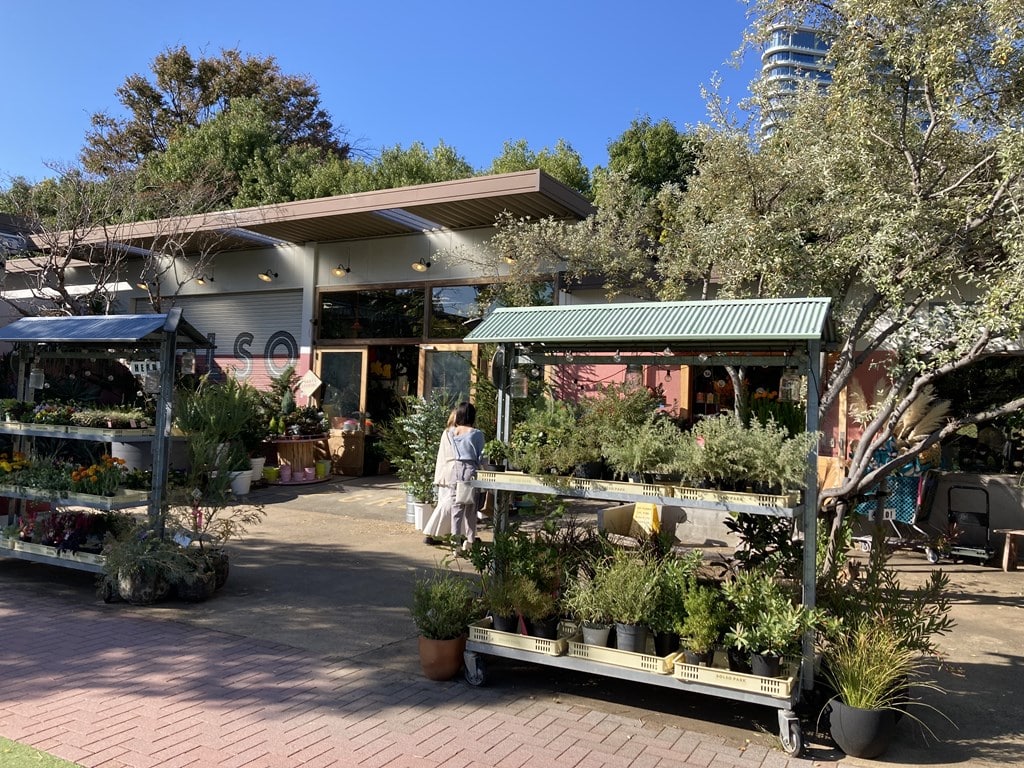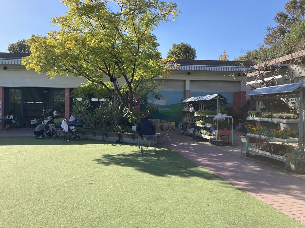 大きな広場を囲うように建物が配置され、その中で植物販売・カフェが運営されています。