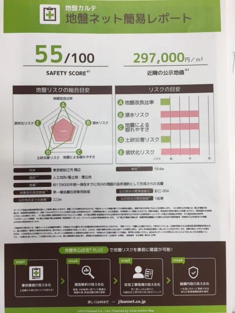 ちなみに地盤も簡易に確認します。液状化リスクがちょっと高いですね。