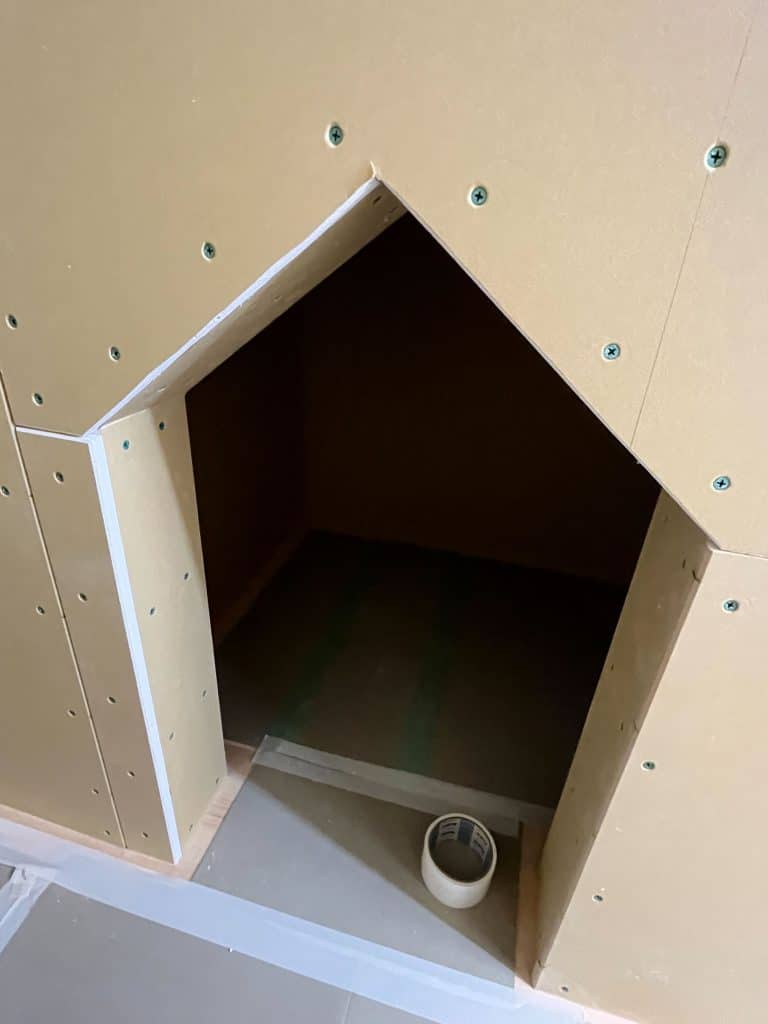 大工さんが気を利かせてくれて、収納の開口をかわいい形にしてくれています!