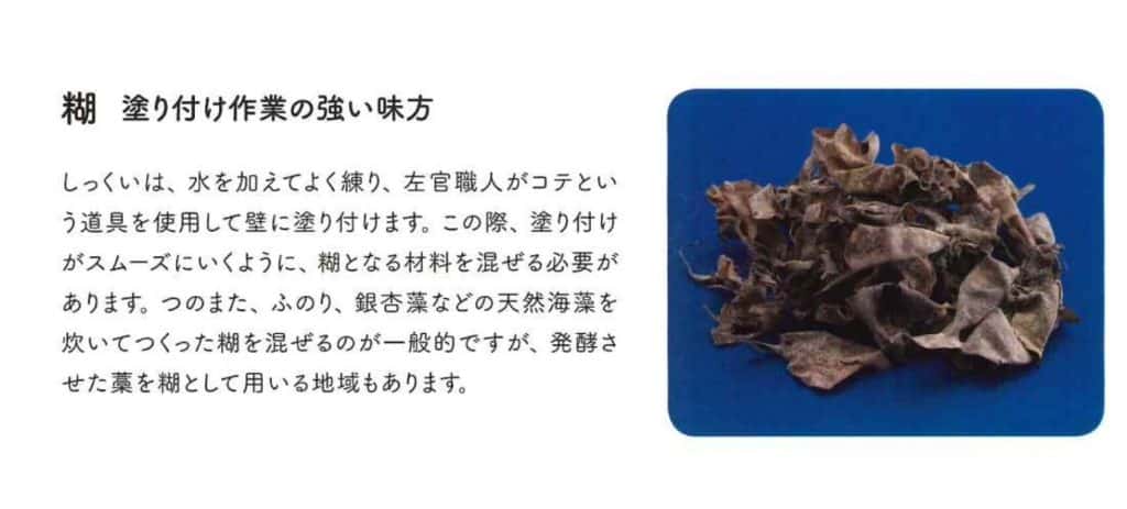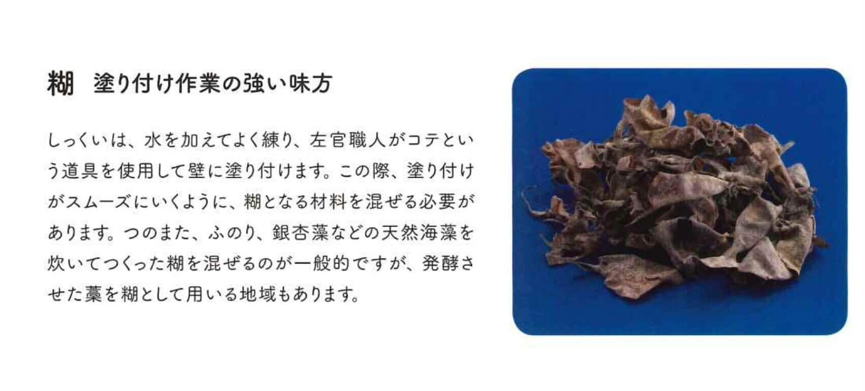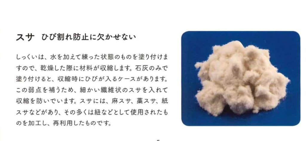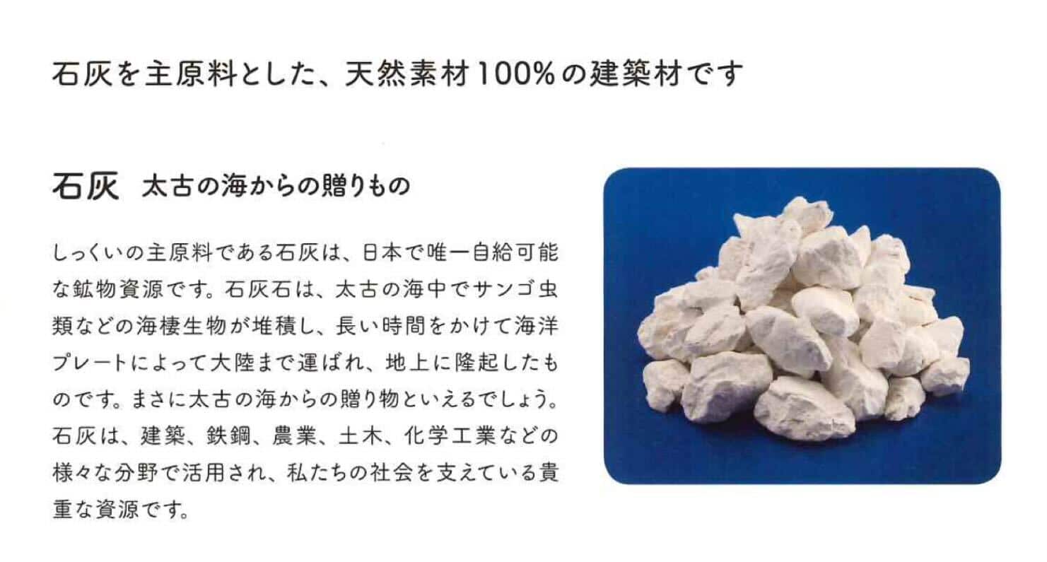 栃木県佐野市葛生地区から採掘されたしっくいの主原料である石灰石を塩焼工法で焼成、消化した消石増粘材と麻やスサ加えた漆喰です。