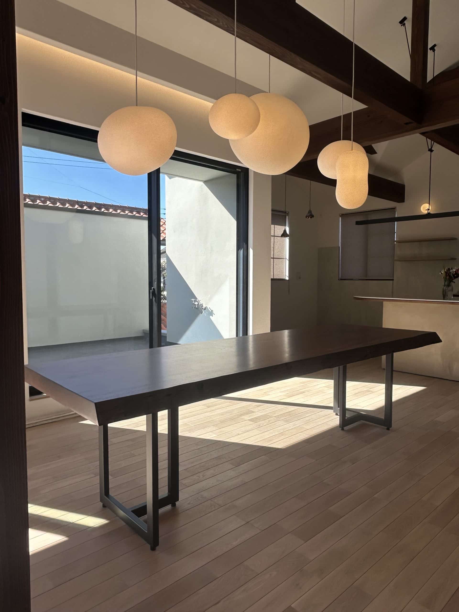 材木屋さんでお施主様に天板をお選びいただき、塗装や脚のデザインまでオーダーメイドで仕上げました。