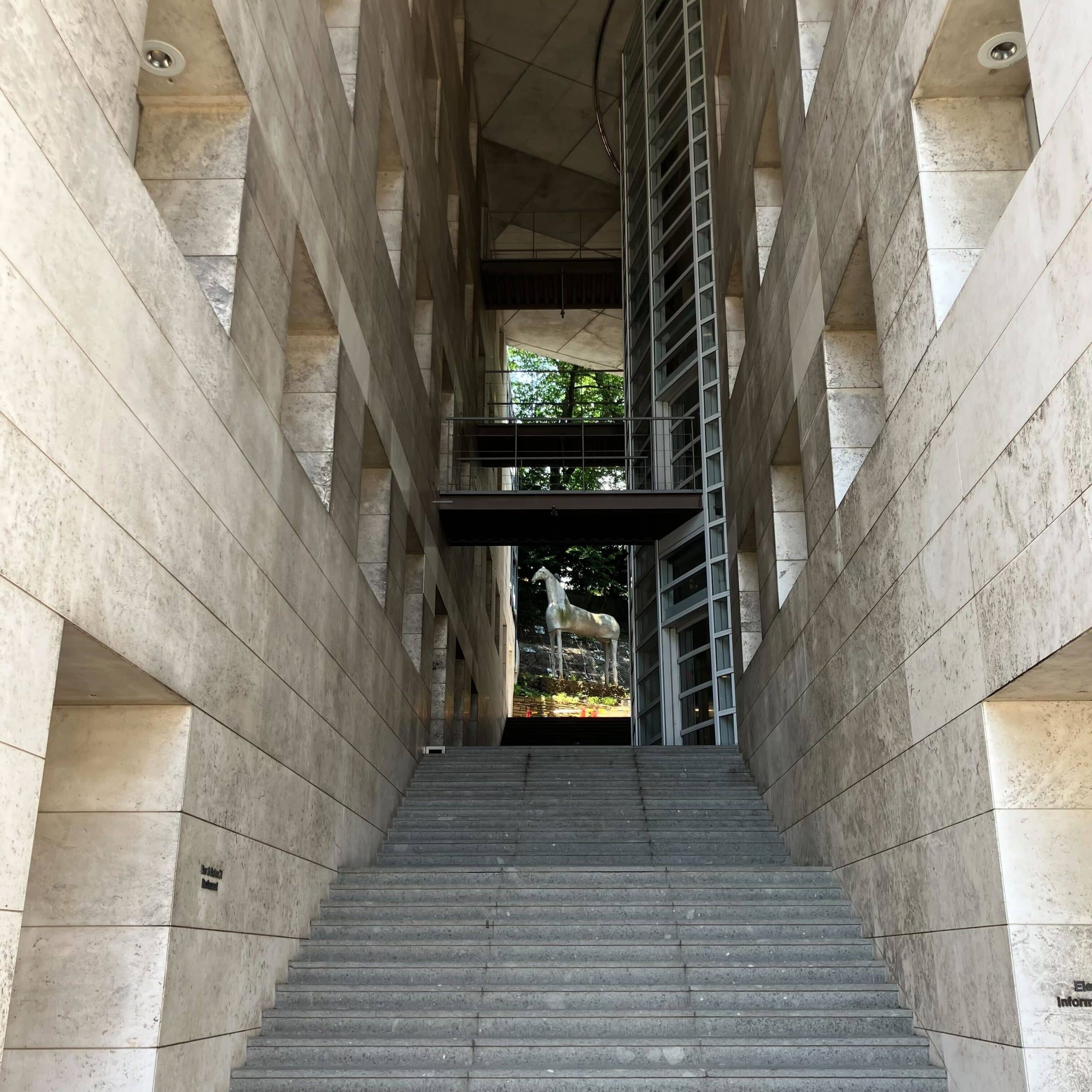 階段の先にたたずむ馬の彫刻がいい雰囲気。