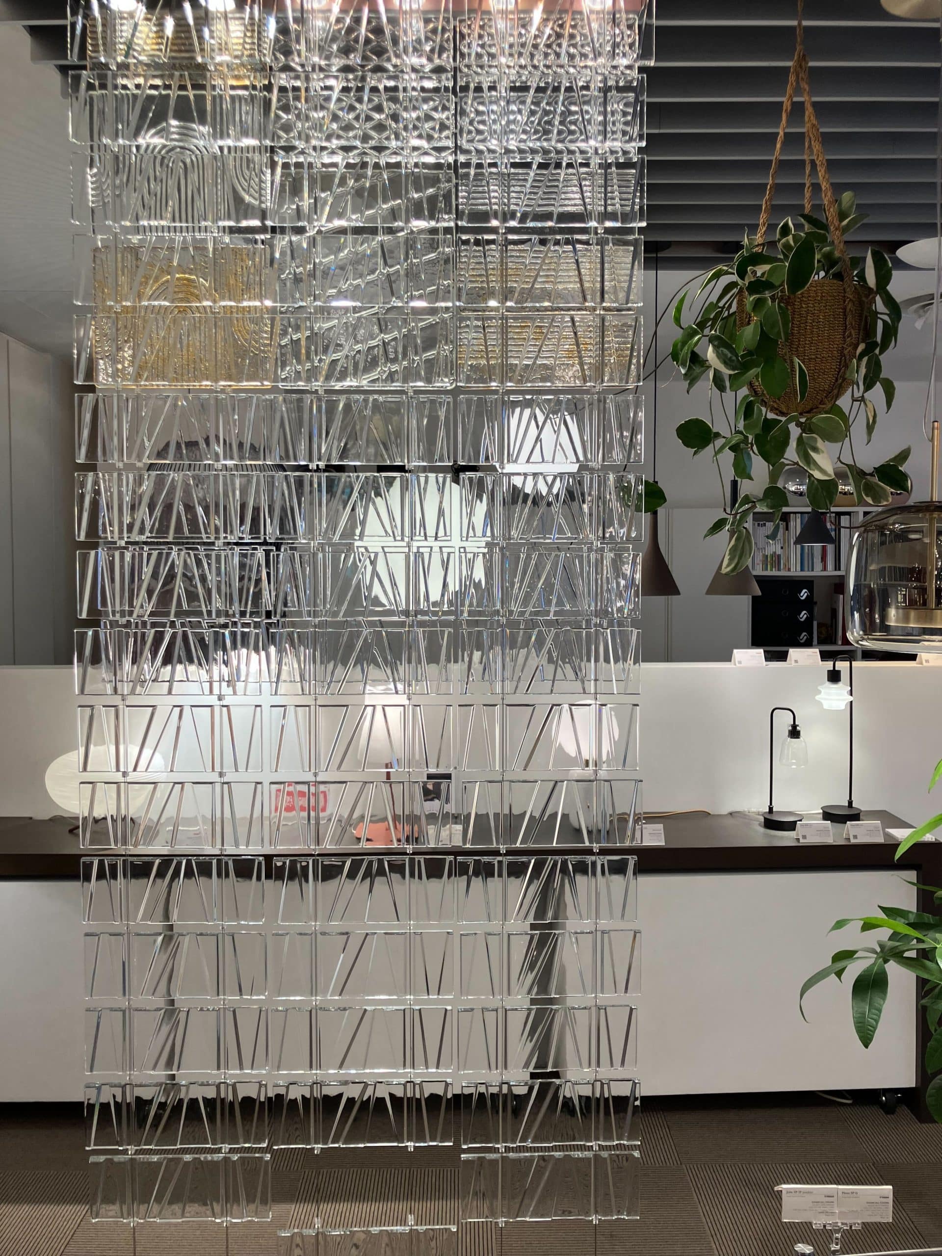 ガラスをパッチワークのように組み合わせたパーテーション。