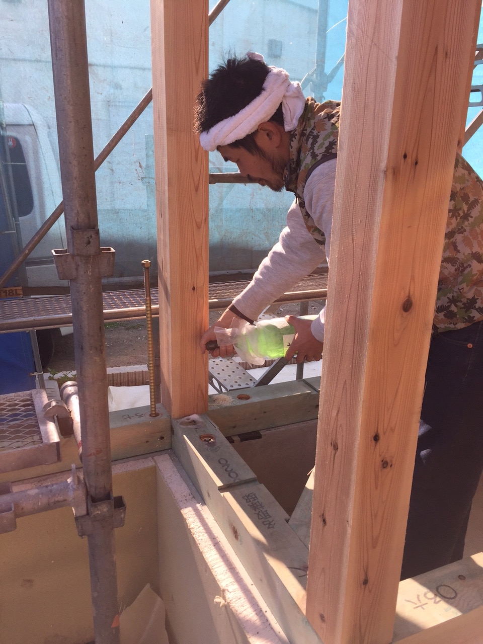 棟梁の高瀬さんとN様と私たちで四方固めの儀を行いました。