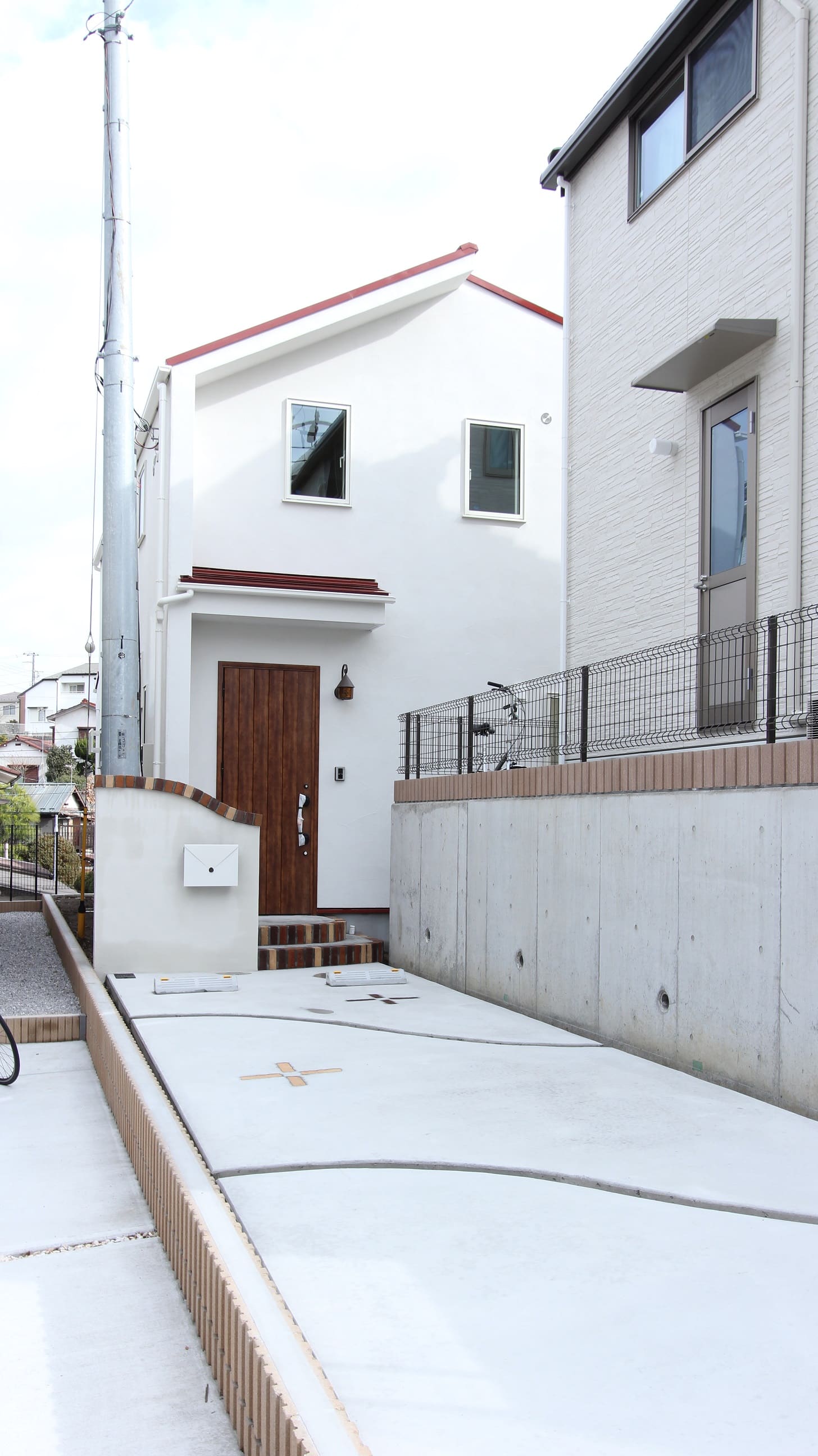 特徴である赤い屋根にマッチするようにレンガをアクセントで添えてあります。