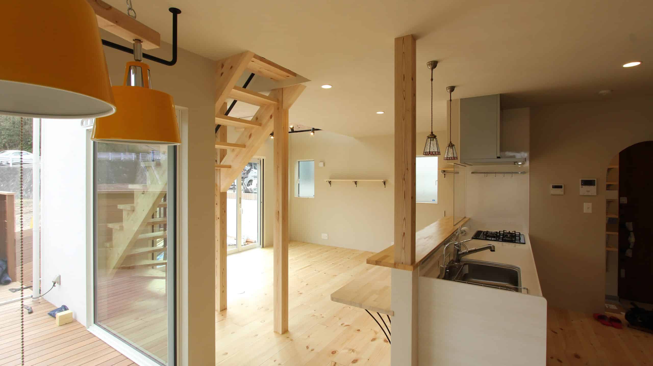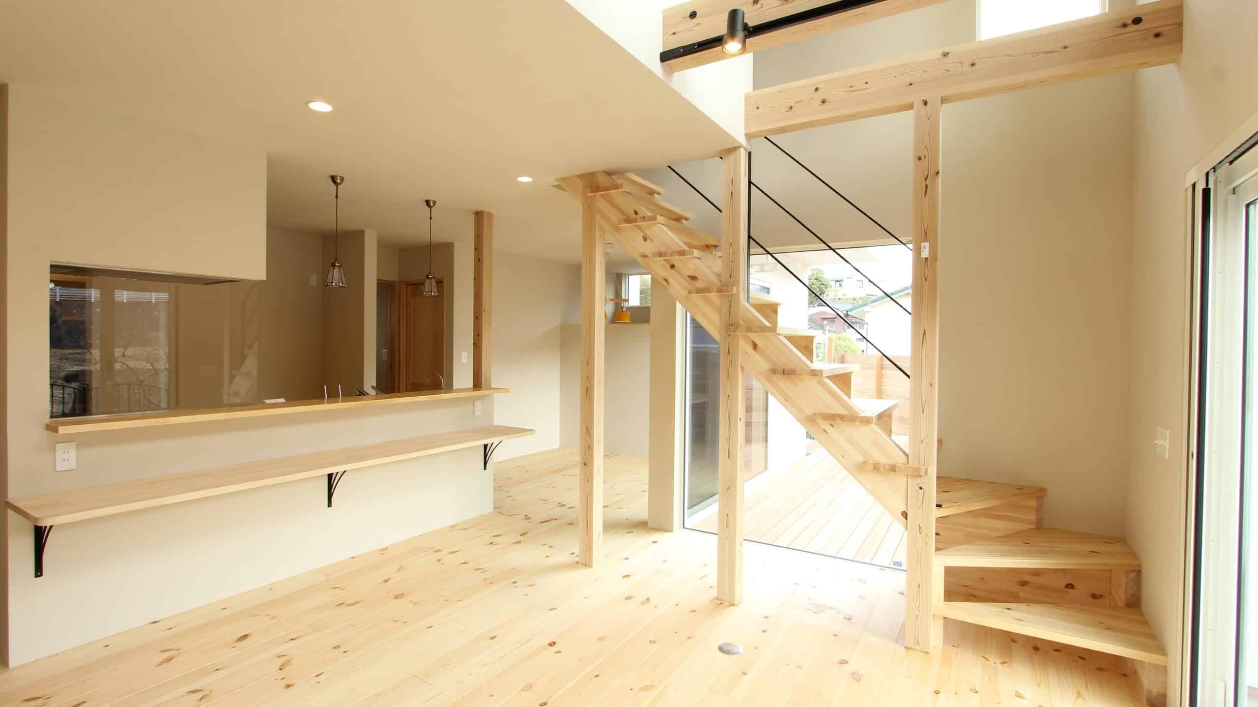 パインの床・階段・カウンターの明るさを