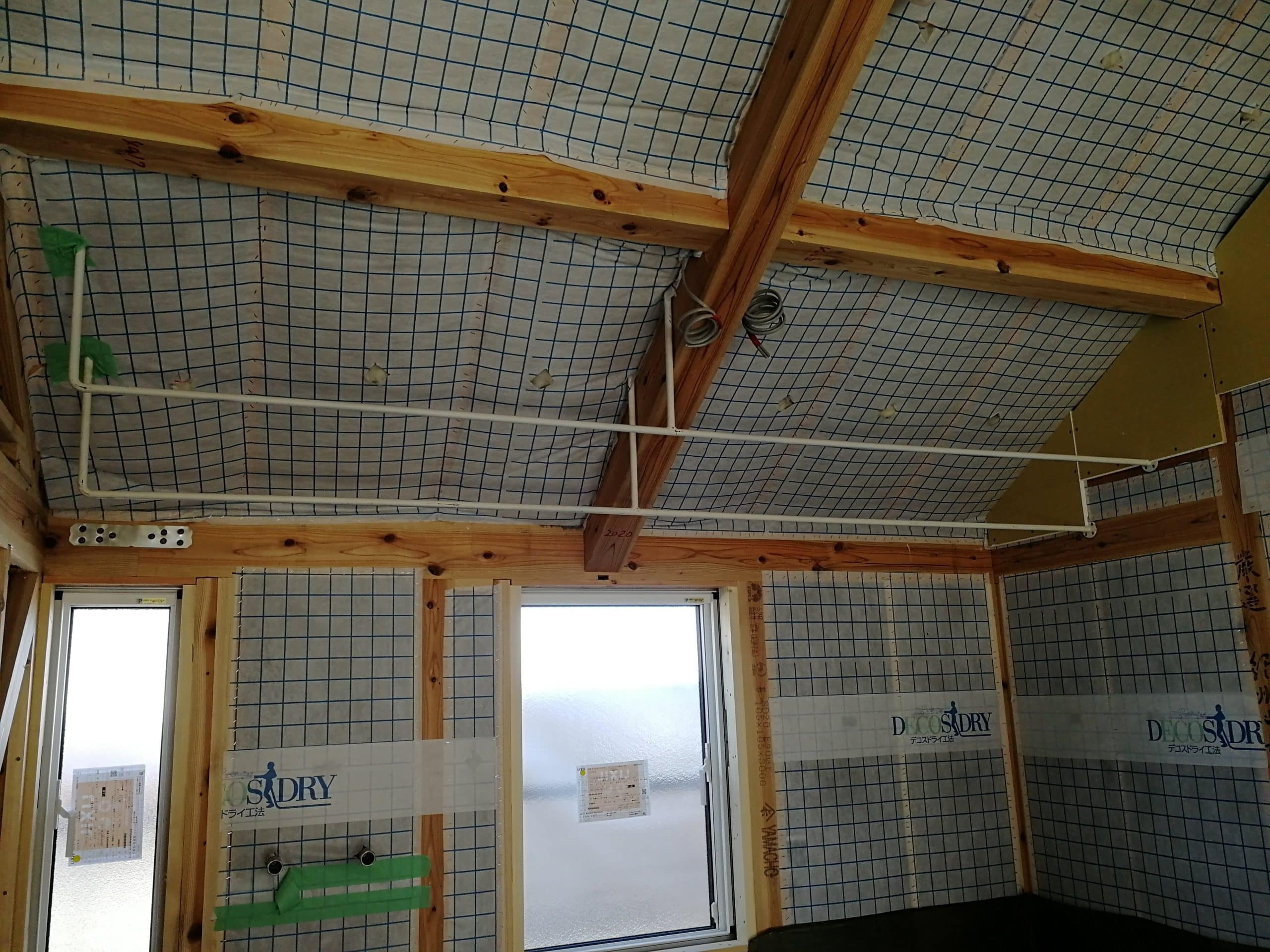 今回はこちらの天井に埋め込みのアイアン物干しを付けます。