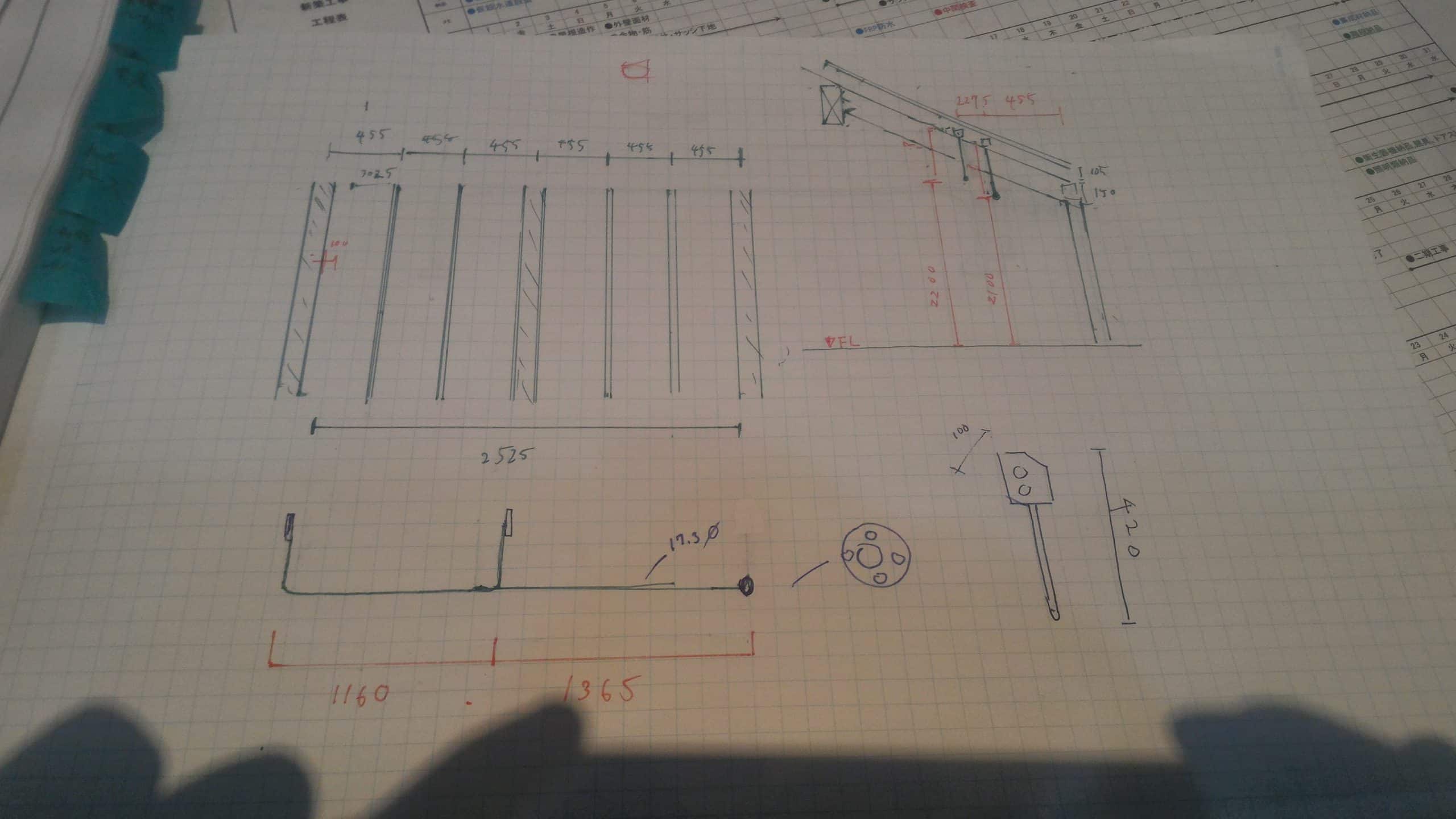 この図面を鉄骨屋さんに渡して作っていただきます。
