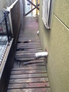 新築でしたら取付ける場所は設計段階で近隣に迷惑にならない場所や排気口付近に可燃物(構造)など無い所へ設置できますが、これから取付を考えている方は設置する部屋の置き場所だけでなく、排気される外側も気に掛けて下さい。お隣さんとのトラブルにもなります。(例:お隣の窓の前など)最悪の場合はメーカーさんHPにもありますが火災事例も考えられますので、販売店・施工店にご相談下さい。
