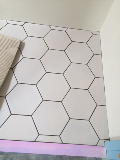 キッチンのタイルも六角形のかわいいタイルです。
