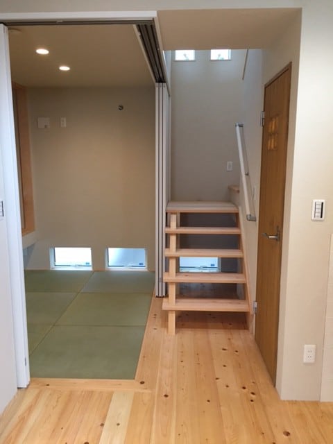 骨組、床、階段は新月伐採の桧の無垢材。艶がいい!