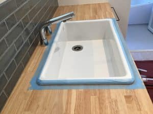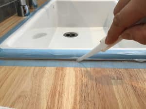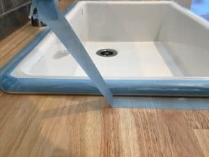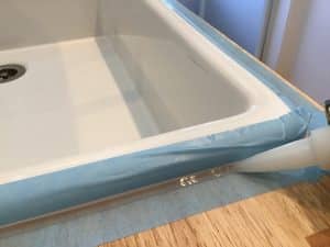 続いてコーキング(今回はクリアーの防カビ入り使用)500円程度です。