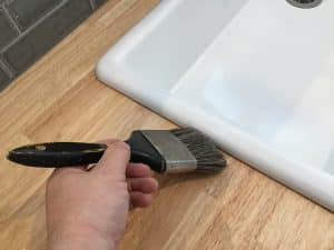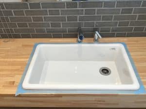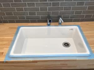 施工したい所に、打ち終わったらへらで余分なコーキングを取ります。