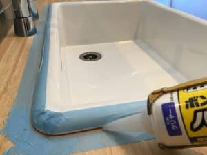 続いてマスキングテープを使用して余分な所にはみ出さないように養生をします。