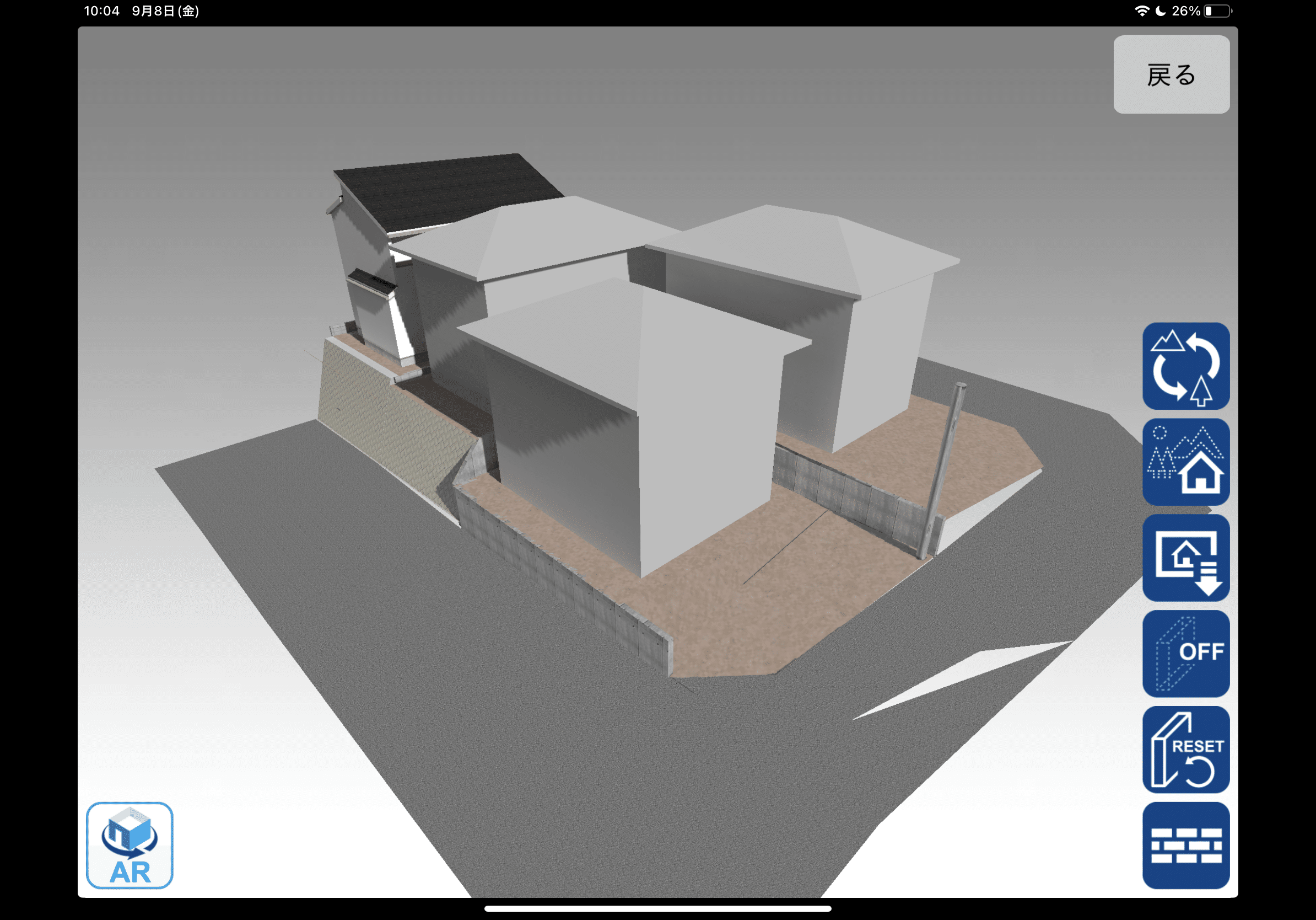 擁壁がどのように作られるのか、擁壁と建物の距離はどのくらい取れるのか、隣地とはどの程度高低差あるのかなどいちいち言葉にしなくても3Dになれば想像につきやすく奥様、お子様にはウケがいいです。