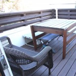 ウッドデッキの広さは非常に気に入ってます。今はベッドを再利用した手作りの机を置いて、プライベートスペースとして、落ち着ける場所になっています。