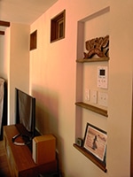 ご主人:前に住んでいたところが、三階建てのマンションだったんですが、20度まであたためて、翌朝は10度までさがっていて。こちらにきて、20度にし ていたら、17度で止まって、そのまま落ちないんです。これには本当に驚きました。一度温めると、冷めにくい。ちいさいヒーター一個で間に合ってしまいま した。悪かったところは、本当になくて。