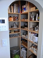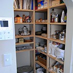 奥さま:先ほど出た、パントリー。気に入ってます。とにかく収納が多いのが良いですね。キッチンの奥まった部分にあるのですが、これだと、リビングからも見えませんし、生活感丸出し、という感じもありません。