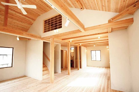 そんな時、新聞折り込みに入っていたチラシを妻が見つけ、それまで何となく「やっぱり自然素材が良いよね」と、漠然と考えていたのですが、そのチラシを見て「ここの会社って、私たちが描いている家そのものじゃないのかな?」って。