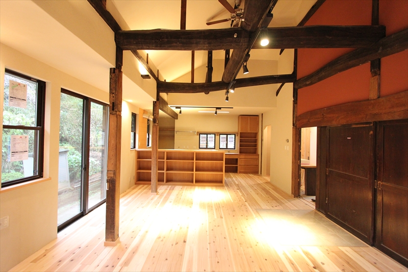 その他にも建具や障子などの再利用品も多くありますが、違和無く全体の調和が取れ、新しくも古さを残した家に生まれ変わりました。