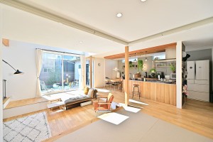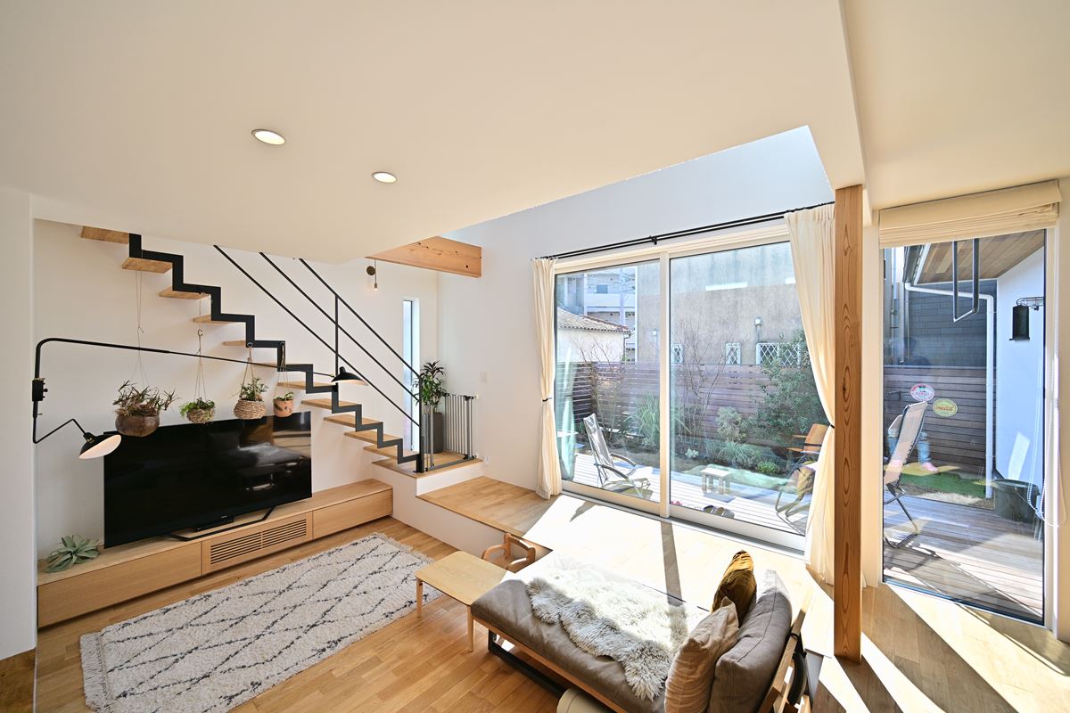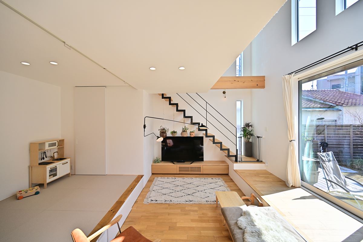 リビングはダウンフロアにすることでベンチのようにも使えます。