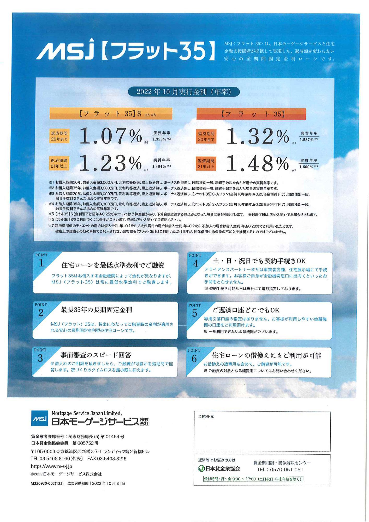 2022年10月のフラット35・35S金利情報のお知らせです。