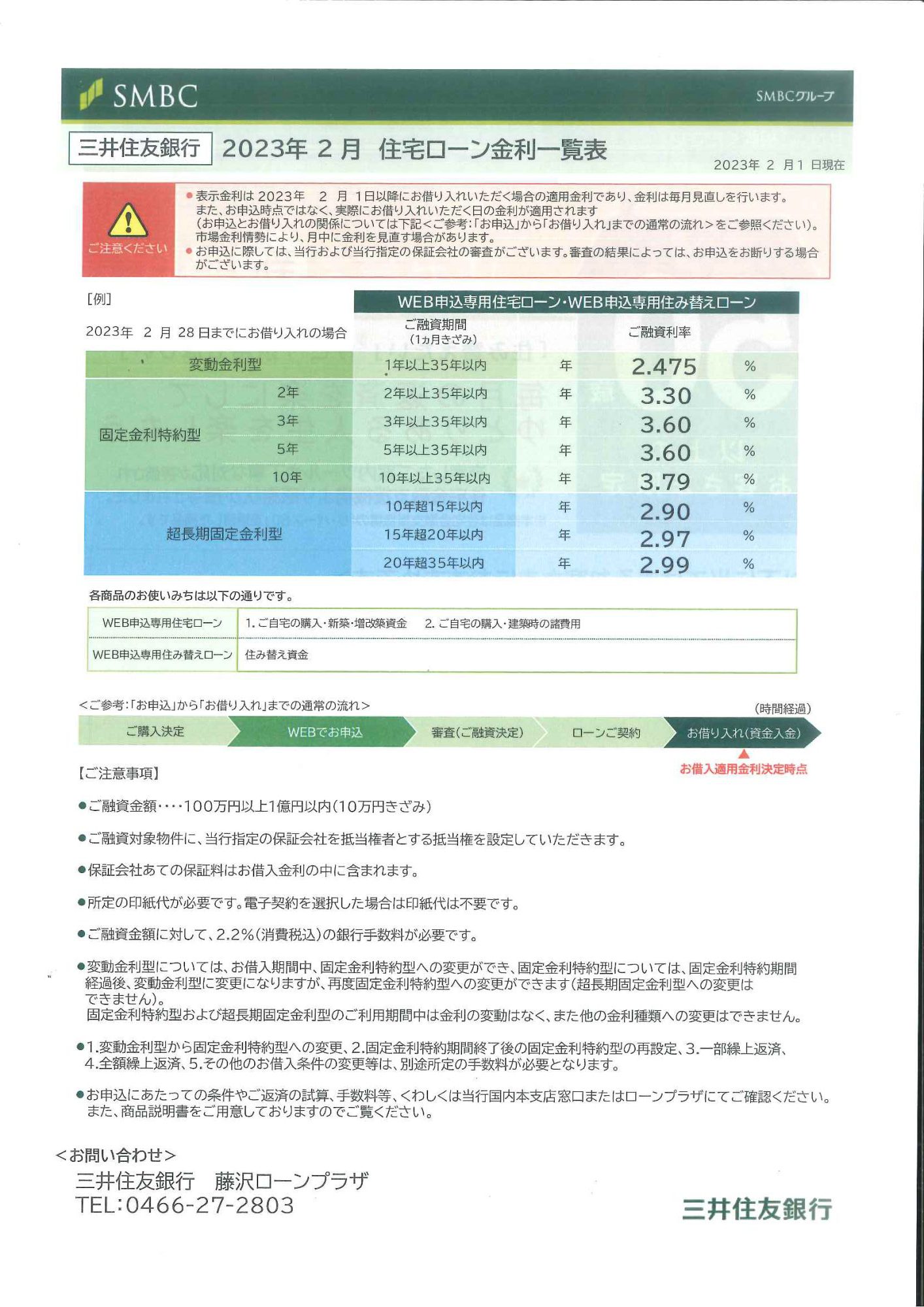 <令和5年2月の三井住友銀行住宅ローン金利表>