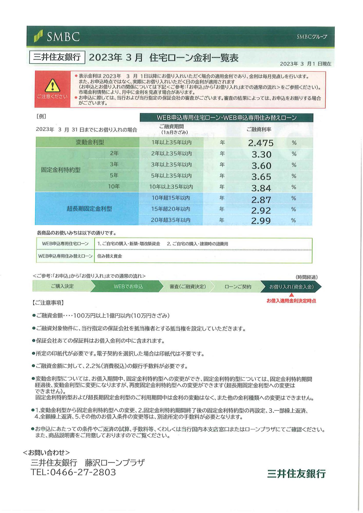 <令和5年3月の三井住友銀行住宅ローン金利表>