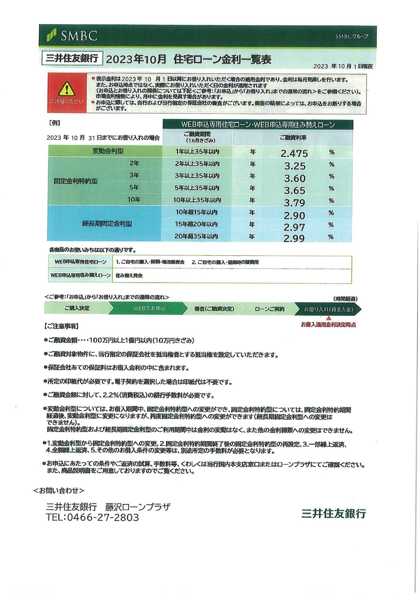 <令和5年10月の三井住友銀行住宅ローン金利表>