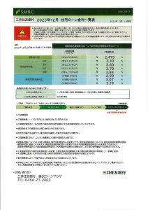<令和5年12月の三井住友銀行住宅ローン金利表>