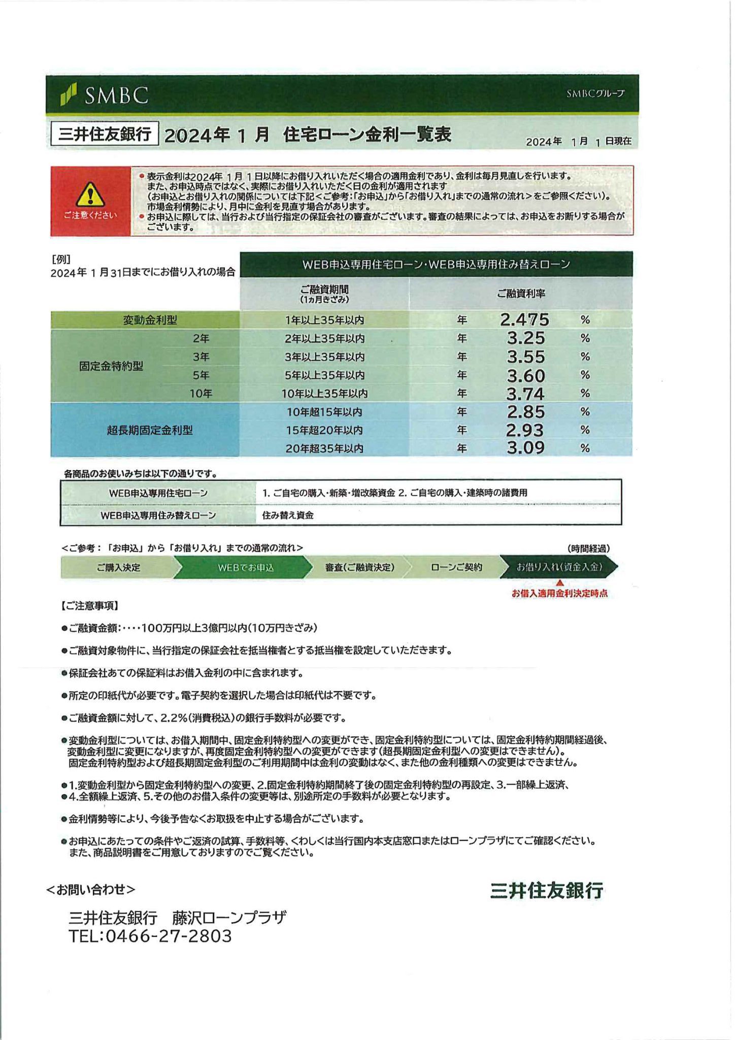 <令和6年1月の三井住友銀行住宅ローン金利表>