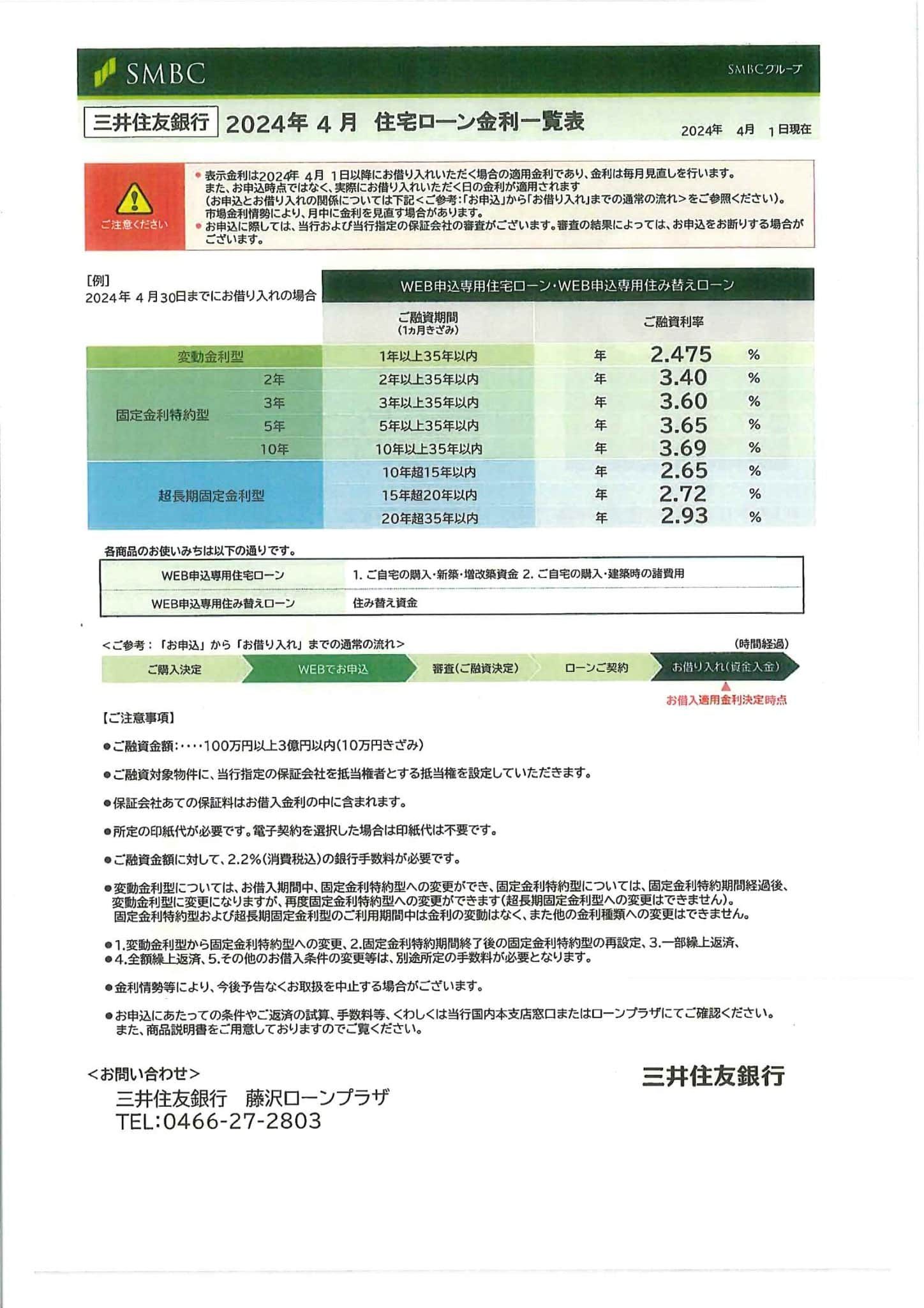<令和6年4月の三井住友銀行住宅ローン金利表>