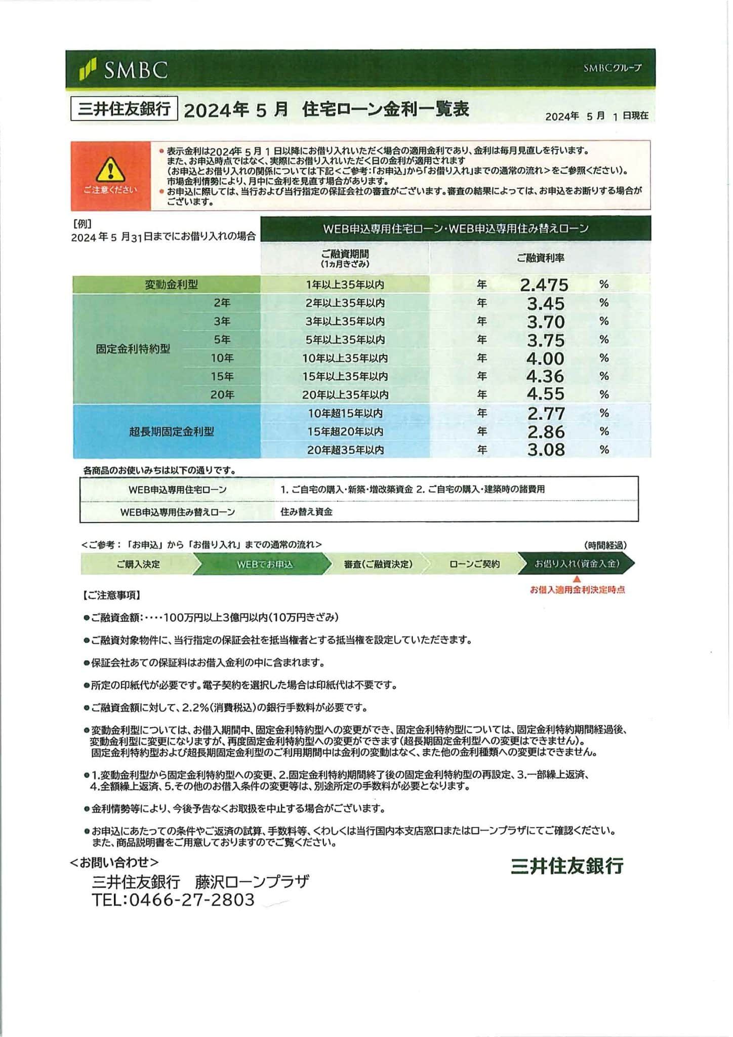 <令和6年5月の三井住友銀行住宅ローン金利表>