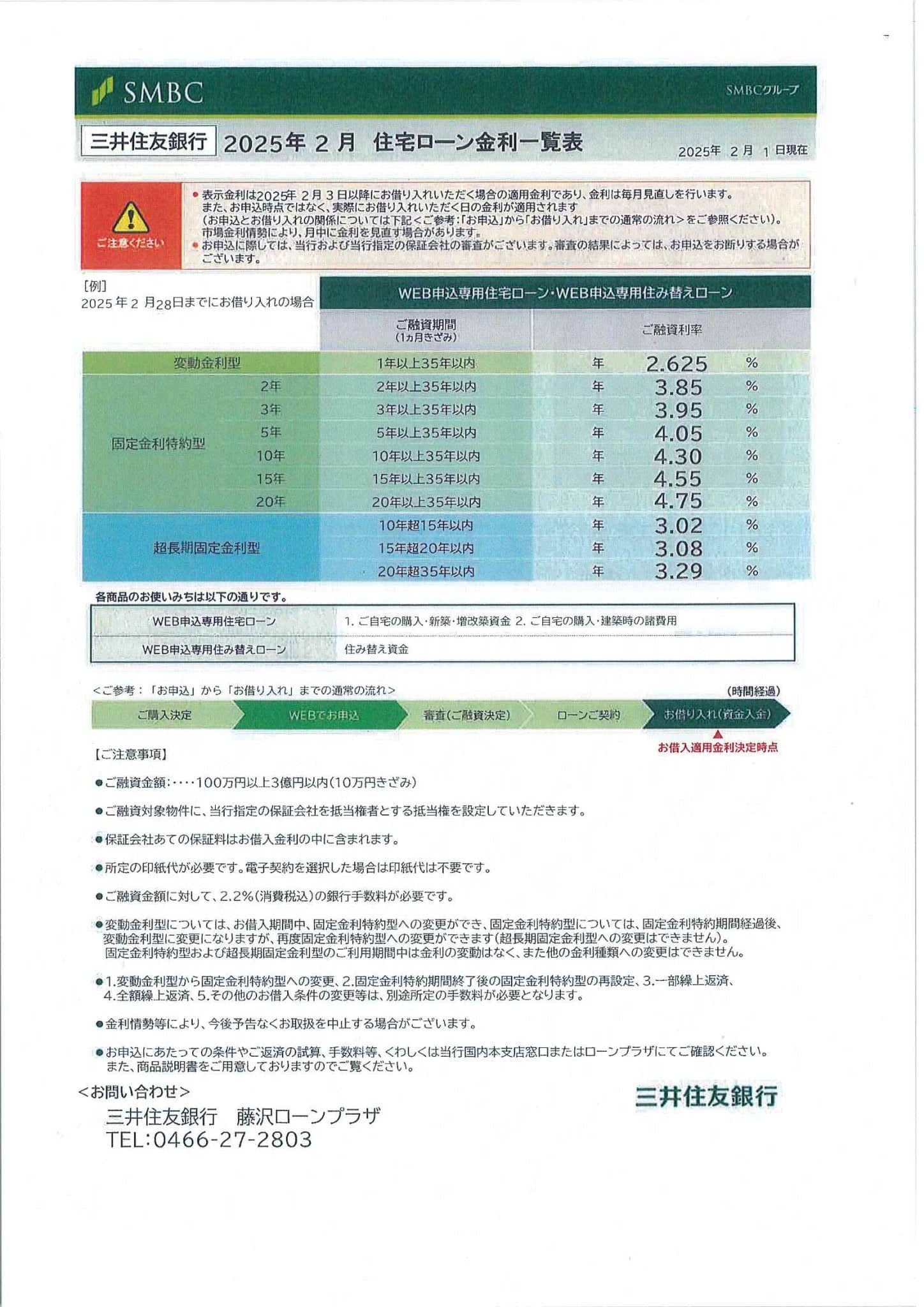 <令和7年2月の三井住友銀行住宅ローン金利表>