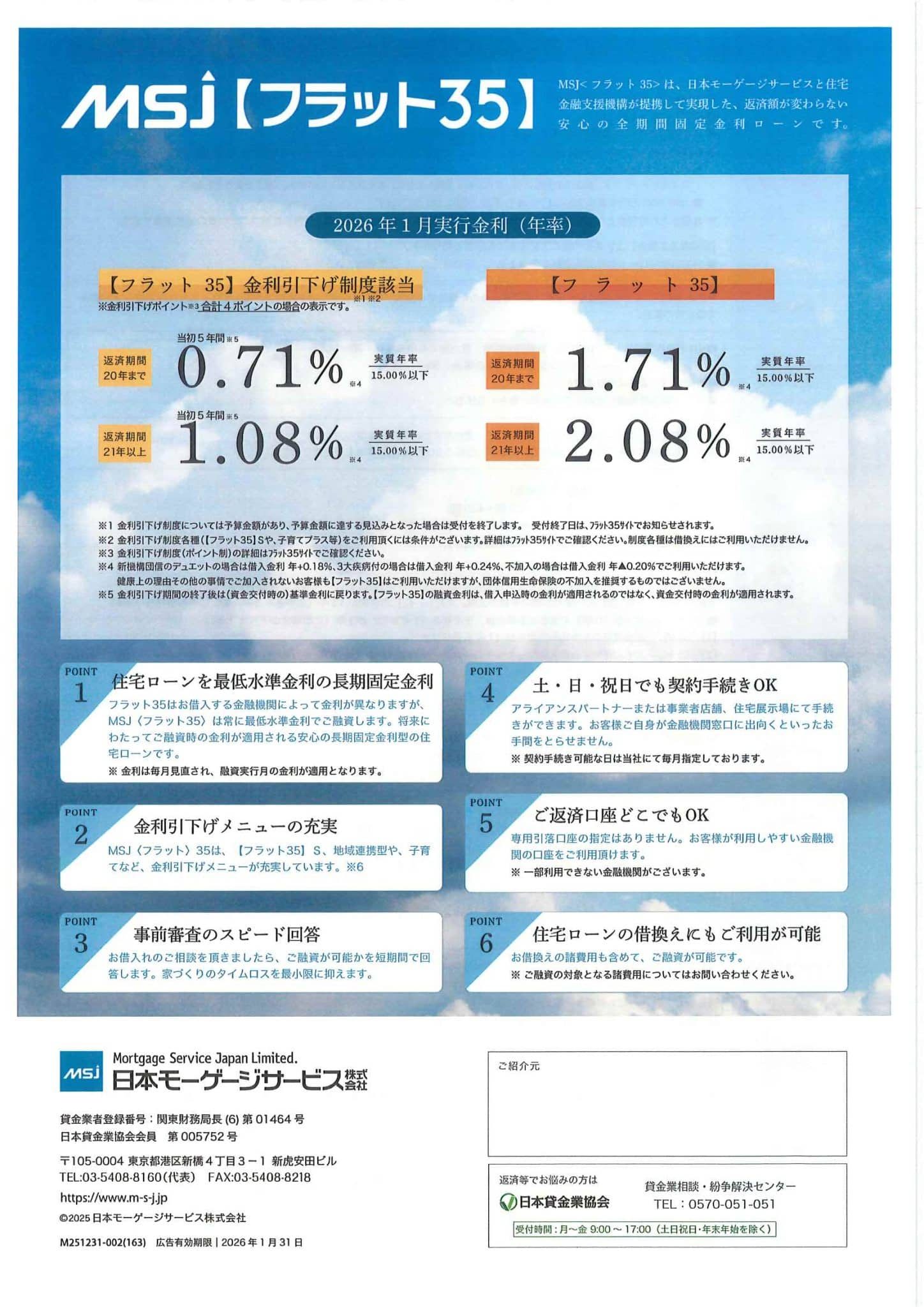 令和8年1月のフラット35金利情報のお知らせです。