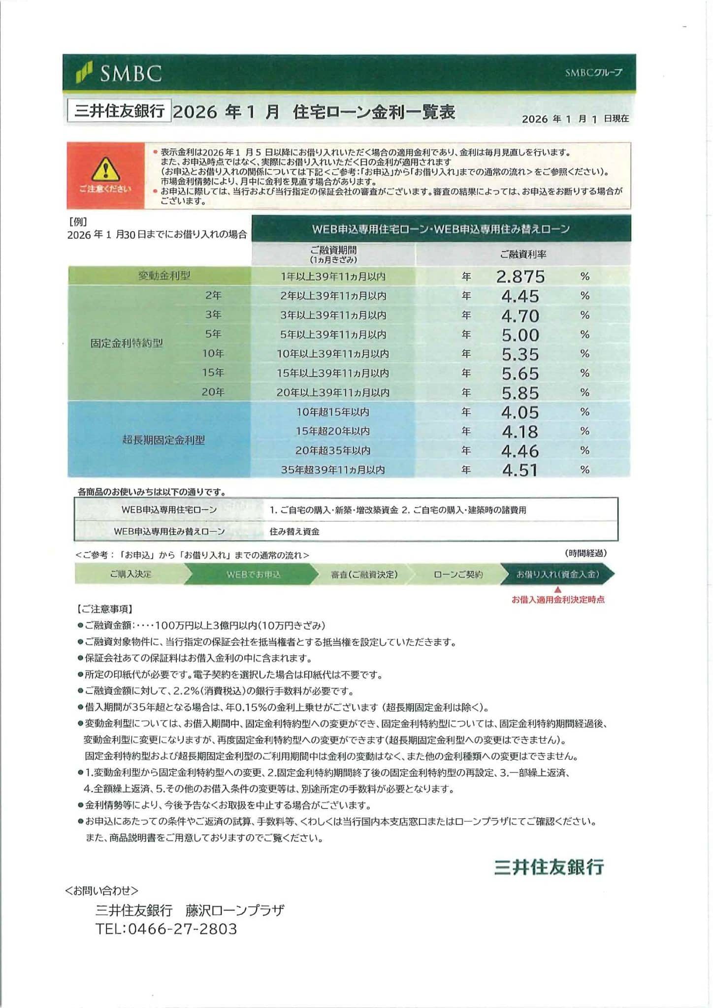 <令和8年1月の三井住友銀行住宅ローン金利表>