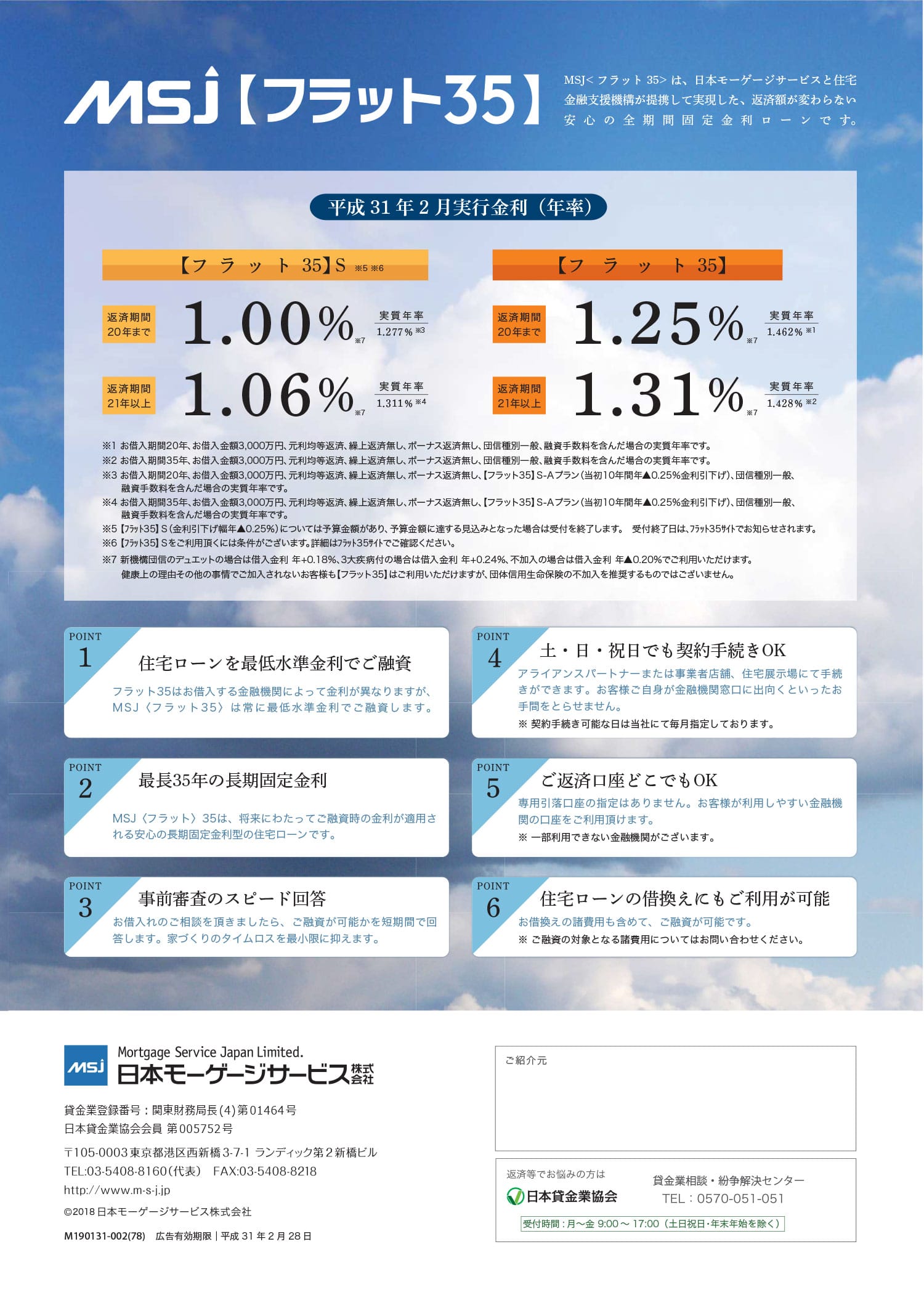 三井住友銀行2019年2月 住宅ローン金利一覧表
