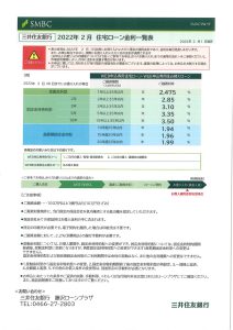 <2022年2月の三井住友銀行住宅ローン金利一覧表>