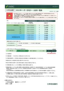 2022年3月 三井住友銀行住宅ローン金利先月より上がりました。↑