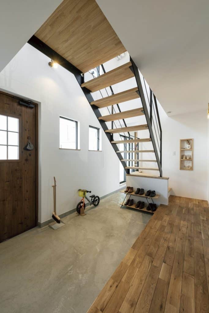 玄関フローリング:オーク(9㎝)、玄関ドア:リクシル ジエスタ2 C12(アイリッシュパイン)