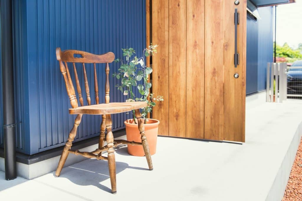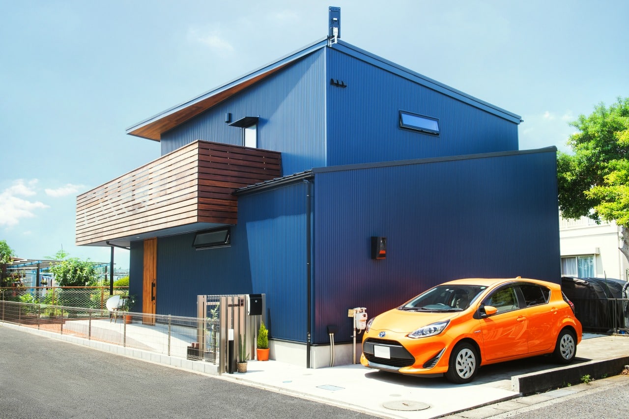 外壁:ガルバリウム、軒天上:レッドシダー、バルコニー手すり:セランガンバツ